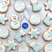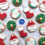 12 cookies in a mix of santa’s, stockings, wreaths and merry Christmas cookies.